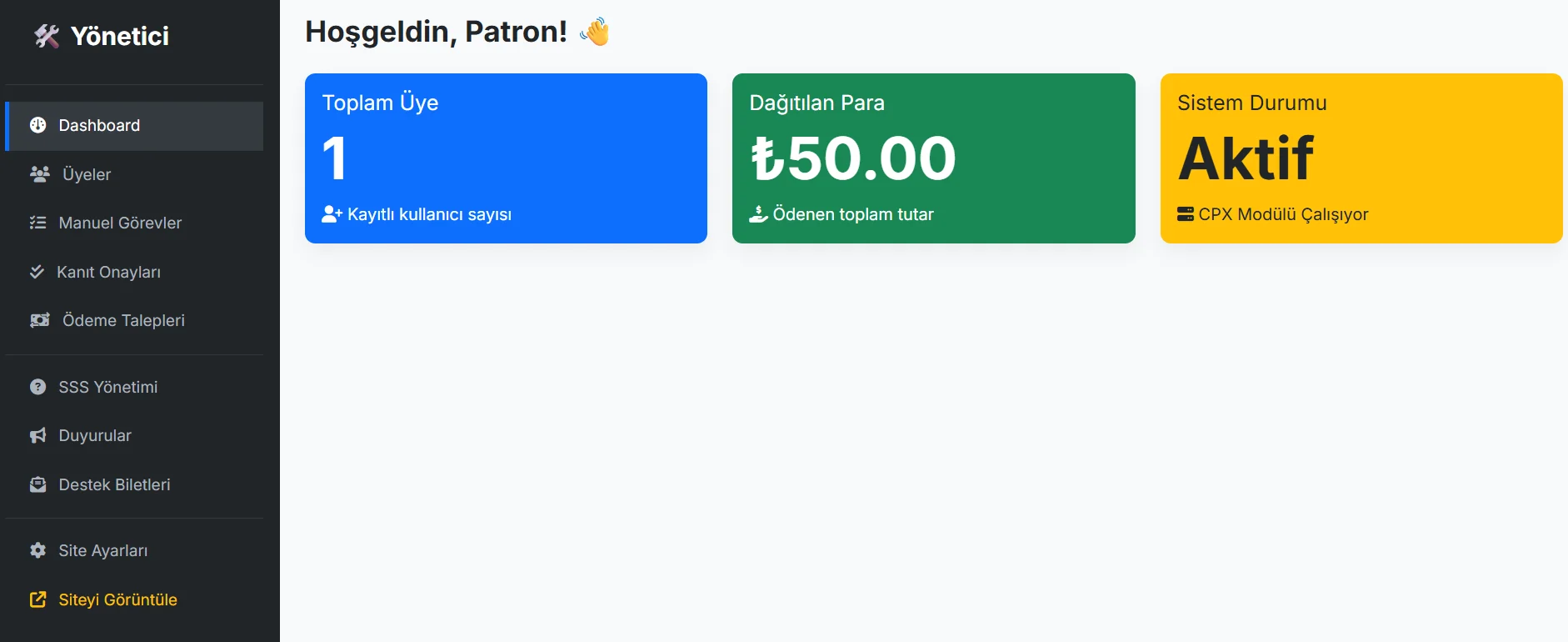 ✅ CPX ile Otomatik Gelir ✅ Seviye & Rütbe Sistemi ✅ Mobil Uyumlu Tasarım